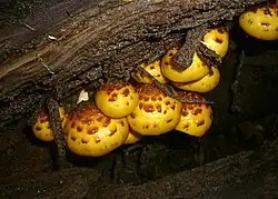 - ^ Smith AH, Brodie HJ (1935). "Cultural characters and pairing reactions of monosporous mycelia and development of the fruit body of Pholiota (Flammula) polychroa". Botanical Gazette. 96 (3): 533–546. doi:10.1086/334499. S2CID 83863682.