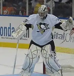 The Penguins traded for the first overall pick for 2003, which they used to select goaltender Marc-Andre Fleury. Fleury was the third goaltender selected first overall behind Michel Plasse and Rick DiPietro.[5] Pittsburgh's first-round selection, second overall, in 2004, Evgeni Malkin, was the Penguins' second Calder Trophy winner.[6] The Penguins earned another first overall selection in 2005 and selected Sidney Crosby in what was nicknamed the "Sidney Crosby Sweepstakes."[7]