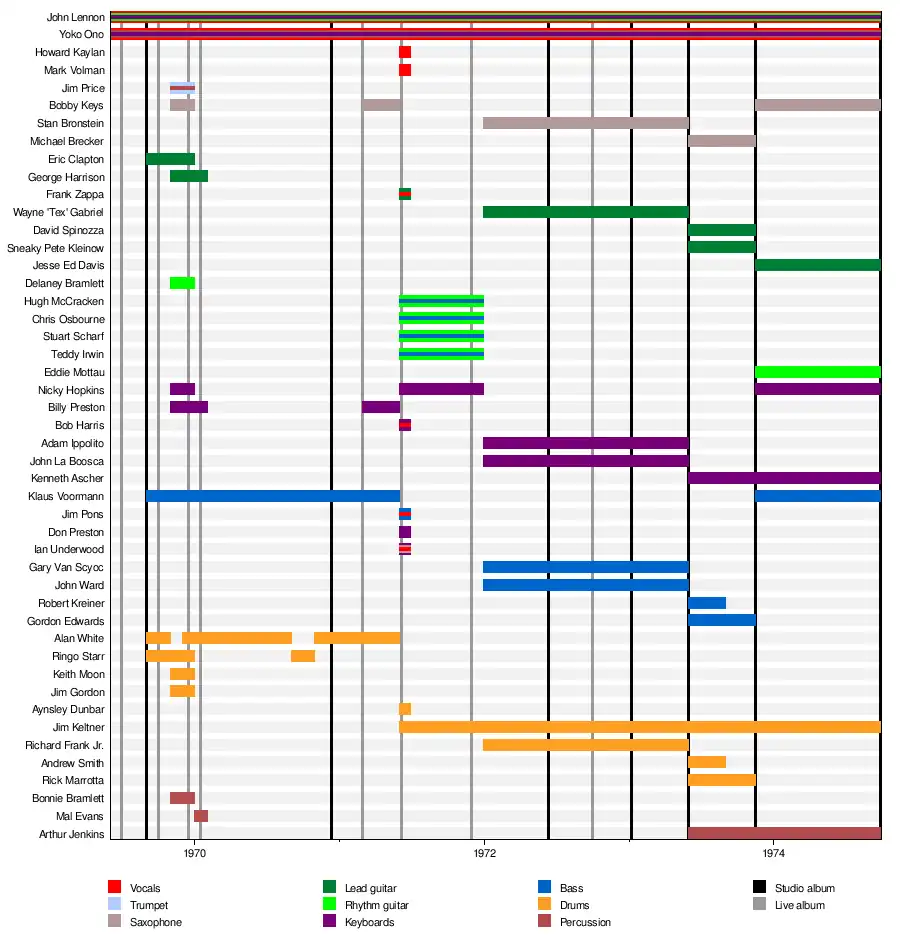 | Plastic Ono Band (February, May–July 1971)[15][16] |