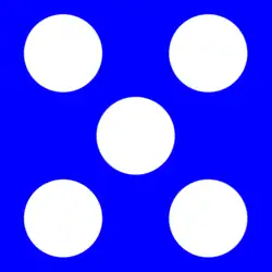 Heraldic banner (a blue cross with five blue escutcheons each charged with an undetermined number of bezants on a white field (hypothetical)).