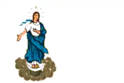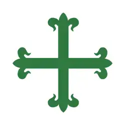 Rectangular white field quartered by a green cross, the cross of Christ on the top-right canton.