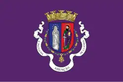 Coat of arms of Luanda on a rectangular purple field