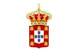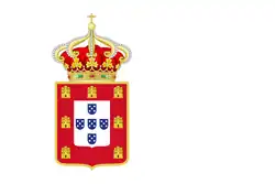Royal Portuguese coat of arms on a rectangular blue field.