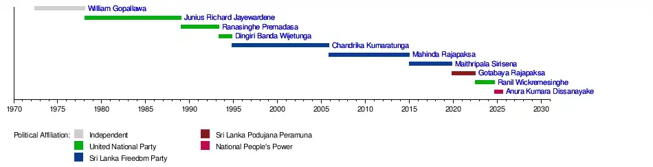 - ^ a b c d e f g h "Heads of State". Parliament of Sri Lanka. Archived from the original on 3 August 2021. Retrieved 29 December 2013.