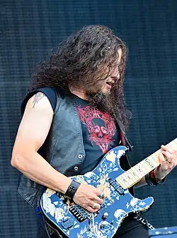 Tate's version of the band was announced in October 2012,[42] it included rhythm guitarist Kelly Gray (who had been a member of Queensryche), lead guitarist Glen Drover (Megadeth), keyboardist Randy Gane (Myth with Tate and Gray), bassist Rudy Sarzo (Ozzy Osbourne, Dio, Whitesnake, Quiet Riot) and drummer Bobby Blotzer (Ratt).[43] Drover later left in November[44] and was replaced by Sarzo's brother Robert (Quiet Riot, Hurricane),[45] and Blotzer was later replaced by Simon Wright (AC/DC, Dio, UFO).[46]