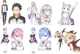 The light novel Re:Zero and its derivative anime and manga adaptations feature a cast of characters created by Tappei Nagatsuki and designed by Shinichirou Otsuka.