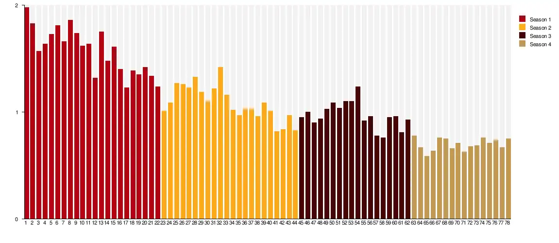 | Season | Episode number | ||||||||||||||||||||||