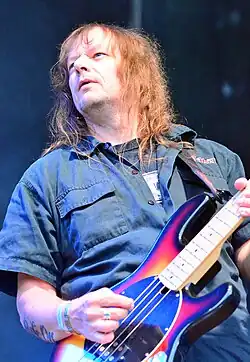 In October 2011, Kasparek announced that he was reforming Running Wild to record a new album, Shadowmaker.[29] The album was released in April 2012 and featured Jordan playing guitar solos on four tracks, with Kasparek dubbing the album "a solo project".[27] The pair continued to collaborate, releasing Resilient in October 2013.[30] After a year off due to an injury, Kasparek returned in 2015 with a full lineup of Running Wild for its first shows since reforming, adding Ole Hempelmann on bass and Michael Wolpers on drums.[31] This lineup has remained intact to date, releasing Rapid Foray in 2016 and Blood on Blood in 2021.[32][33]