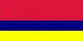 1998– Flag of Oryol The coat of arms of the city on a red background and a light blue stripe with the hammer and sickle in the canton