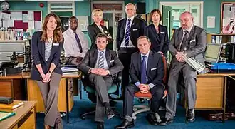 Julie Dodson (Pippa Haywood) is head of Syndicate 3 as a Detective Super Intendant, and close friends with Gill Murray. Kevin used to work for her until he was moved to MIT, and he harbours a deep resentment towards her. Haywood joined the cast in the second series, notably when handling the inquiry into the murder of Nick Savage, and becomes more prominent in the latter half of Series 3 when asked to lead the Helen Bartlett case. Noting the character's close relationship with Gill, Haywood stated, "I like the double act between Julie and Gill Murray. When they are at work they have this reputation that they are fearsome; a force to be reckoned with, but there's also a lot of humour between them".[3] Late in Series 4 Dodson is asked by Janet to investigate allegations that Gill is drunk on the job, putting a strain on their friendship when Gill's ability to lead the MIT is called into question. Following Gill's departure, Dodson assigns a series of temporary SIOs to Syndicate 9, staffed exclusively by Constables. She later promotes Rachel into the position of Detective Inspector. Dodson has a somewhat risk averse approach to investigations, most apparent in season 4 when Gill pushes for a massive taskforce investigation into the Pritchards while Dodson was less enthusiastic, opting for a more cautious, smaller target strategy. She is later apprehensive to Rachel's handling of the investigation as acting DI in season 5.