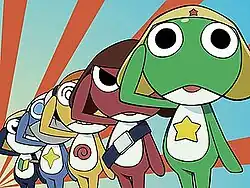 Sgt. Frog, also known as Sergeant Keroro and originally titled as Keroro Gunso, is a Japanese television series produced and animated by Sunrise Inc. The series centers around the attempted invasion of Earth by a Platoon of 5 frog-like aliens and the mishaps that their incompetent and lazy leader cause. Around them are the human figures that help them understand earth's culture. The anime is an adaptation of Mine Yoshizaki's manga series of the same name, which was first serialized in Japan's Shōnen Ace in 1999, and has been toned down for children instead of focusing on teenagers.