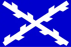 1506–1842 | Cross of Burgundy flag, military flag, also used as flag of the Spanish Empire and its overseas territories | A red saltire resembling two crossed, roughly-pruned (knotted) branches, on a white field |