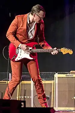 Joe Bonamassa (born 1977), a blues rock guitarist, has used Stratocasters throughout his career. When he was 12 years old, Bonamassa played a crimson 1972 Fender Stratocaster. Bonamassa is known for his extensive collection of vintage amplifiers and guitars.[15] In 2018, Bonamassa has said that he has more than 1000 guitars, a large fraction of which are Fender Stratocasters.[16][2]