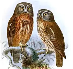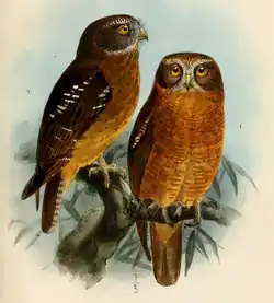 - ^ a b c "Ninox fusca: BirdLife International: The IUCN Red List of Threatened Species 2023: e.T230084345A233564880". IUCN Red List of Threatened Species. 2023-04-28. 2023-04-28. doi:10.2305/IUCN.UK.2023-1.RLTS.T230084345A233564880.en.