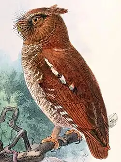 - Réunion scops owl, went extinct in the 17th century after the colonization of the island of Réunion.[4]