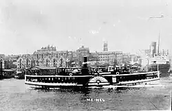| Me Mel | 1888 | Paddle steamer built for Balmain Steam Ferry Company. On 31 January 1914, sank in four minutes without loss of life after being hit at her wharf by steamer Mokau. | Gadigal word meaning "eye" and name for Goat Island | 174 tons | 38.1 m | 580 | paddle steamer | More images...