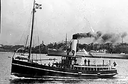 | Commodore | 1878 | Manly iron paddle steamer. Originally had twin funnels. Sold to Newcastle in 1926 for use as a tug. Scuttled 8 September 1931 | 187 tons | 1926 | More images...
