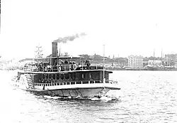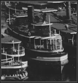 | Telephone | 1878 | Wooden paddle steamer. Built by H. Perdriau. 40-hp compound diagonal steam engine by Atlas Engineering Co. | 85 tons | 31.9 m | - | ||||