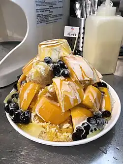 - Mango shaved ice – Taiwanese shaved ice dessert with mango topping.