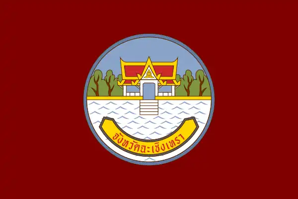 2007–present | Flag of Chachoengsao Province | Rectangular field of dark red (maroon.) In the center of the flag is the provincial seal, which depicts Wat Sothonwararam |
