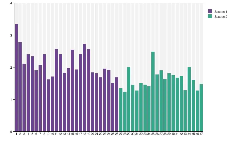 | Season | Episode number | ||||||||||||||||||||||||||
