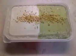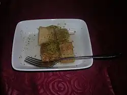 | Soğuk baklava | Phyllo pastry, dairy | Thin layers of phyllo brushed with clarified butter, poured with a type of cold sharbat syrup consists of milk and sugar and served with cocoa or grated chocolate on top. | |