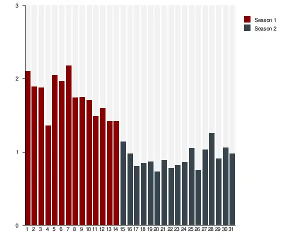 | 1 | 2.10 | 1.89 | 1.88 | 1.36 | 2.05 | 1.97 | 2.18 | 1.74 | 1.75 | 1.71 | 1.49 | 1.60 | 1.42 | 1.42 | – | |||