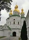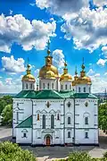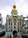 | Dormition Cathedral of the Kyiv Pechersk Lavra | Pechersk, Kyiv | 1669–1677, 1722–1729, 1767–1769[26] | The medieval church was significantly rebuilt: chapels and porches were added, six new side domes were built, and the exterior and interior were redecorated. It incorporates elements of the Elizabethan Baroque. The cathedral was almost entirely ruined in 1941, and rebuilt in the 1990s to match the style of the 18th century. |