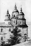| St. Nicholas Cathedral | Nizhyn | 1655–1658 | Large cruciform nine-part five-dome church. Much of the exterior decoration has been reconstructed hypothetically. It iconostasis was made in the 1730s and destroyed in the Soviet period.[9] This church is the prototype of Ukrainian Baroque cruciform five-dome churches. | |