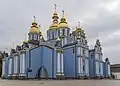 | St. Michael's Cathedral of St. Michael's Golden-Domed Monastery | Old City, Kyiv | End of 17th century, 1715–1746 | The medieval one-dome church was rebuilt in 17th century and became five-domed, and then seven-domed with elements of Elizabethan Baroque in 18th century. Pediments, porches, aisles, and buttresses were added. The three-story bell tower was built in 1716–1719, the cathedral was decorated in mid 18th century, and its iconostases were from 1718, 1732, and beginning of 19th century.[24] The cathedral and the bell tower were entirely ruined in 1935–1937, and restored in the 18th-century form in the 1990s. |