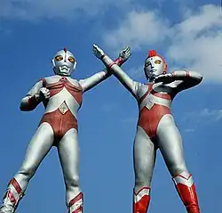 - Combined Monsters (合体怪獣, Gattai Kaijū) Pluzuma (プラズマ, Rurazuma) and Minuzuma (マイナズマ, Mainazuma) (49): A pair of malicious sibling monster from Mt. Nio of Okutama, Tokyo, both had the ability to unleash horn beams and shooting energy beams of different poles (Pluzuma for positive and Minuzuma for negative poles), as well as combining on each other's backs to become stronger. Initially, the two had been signaling each other's with 1520 kHz radio wave to communicate and at the same time deceiving UGM into shrouding their appearance as 14 different monsters. Tsutomu's act of mimicking Minuzuma's radio wave caused Pluzuma to appear and chased the boy. To make matters worse, Pluzuma summoned his younger brother Minuzuma and injured Yamato's shoulder, hampering him even as 80. With combined brothers proved too much for 80 to handle, Ryōko was forced to transform into Yullian for the first time and both Ultras perform Double Power to destroy both monsters at once.