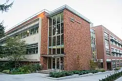 Named for Susan Campbell, wife of university president Prince Lucien Campbell, Susan Campbell Hall was originally a women's dorm [n 37] Part of Women's Memorial Quadrangle, NRHP Reference: 92001320 [n 38] |
