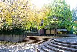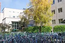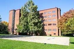Gerlinger Annex houses the department of dance. It was named for Irene Hazard Gerlinger, first woman regent and fundraising donor.[n 34] Part of Women's Memorial Quadrangle |