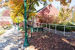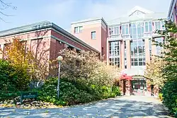 Named for University donor Phil Knight, the library received its current name after a major renovation in 1994. The library is part of the Memorial Quad, honoring the athletes of the university (1921), students who fought in the Spanish–American War and World War I (1932), and senior class president Robert Bailey who drowned in the mill race (1940).[n 28] Part of the Memorial Quad, NRHP Reference: 90000370 [n 29] |