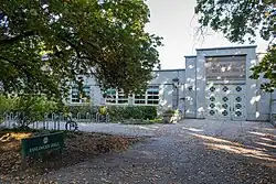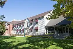 Original construction was behind Johnson Hall, the building was moved to its present location in 1979 [n 42] |