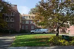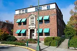 Named for active donor Thomas G. Hendricks and originally a women's dorm, the building is now home to the Career Center, the Department of Women's and Gender Studies, the Department of Planning, Public Policy and Management, the Center for the Study of Women in Society and the Center for Latino/a and Latin American Studies.[n 35] Part of Women's Memorial Quadrangle, NRHP Reference: 92001320 [n 36] |