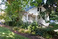 Agate House was named for nearby Agate Hall when the university acquired the property in 1984. A 1925 bungalo, the house had been owned by the Eugene School District and used for classroom space.[n 64] |
