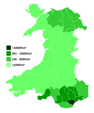 | English | Welsh | (/km2) | (/mi2) | (km2) | (mi2) | ||||