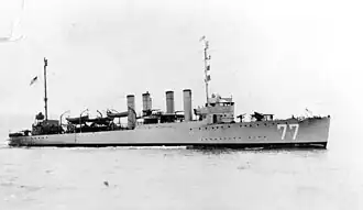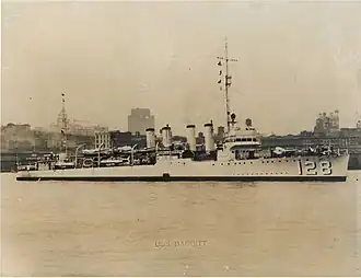 | DD-122 | Breese | 10 November 1917 | 11 May 1918 | 23 October 1918 | Scrapped by US, 16 May 1946 | [48] Archived 21 November 2010 at the Wayback Machine | |