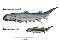 - ^ Newman, Michael J.; Davidson, Robert G.; Blaauwen, Jan L. Den; Burrow, Carole J. (2011-11-01). "The Early Devonian Acanthodian Euthacanthus gracilis from the Midland Valley of Scotland". Scottish Journal of Geology. 47 (2): 101–111. Bibcode:2011ScJG...47..101N. doi:10.1144/0036-9276/01-436. ISSN 0036-9276. S2CID 129309618.
