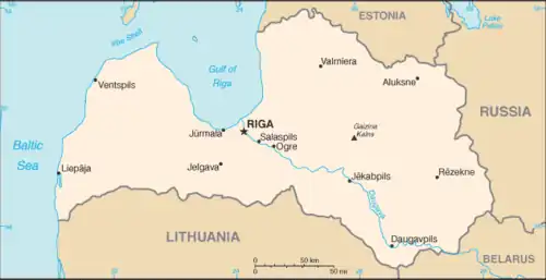 Latvia (Latvian: Latvija), officially the Republic of Latvia (Latvijas Republika), is a country in the Baltic region of Northern Europe. It is bordered to the north by Estonia, to the south by Lithuania, to the east by the Russian Federation, and to the southeast by Belarus. Across the Baltic Sea to the west lies Sweden. The capital of Latvia is Riga. The local time is GMT+2 (GMT+3 DST).