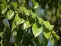 | Opiliaceae (bally-coma family) | Opilia (derivation unknown)[136][137] | 11 genera, in the tropics and temperate Oceania[136][138] | Parasitic evergreen shrubs and trees, and a few woody vines[42][136] | Santalales[136] | ![]() Opilia amentacea |