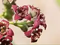 | Stegnospermataceae (Cuban-tangle family) | Stegnosperma, from Greek for "dry seeds"[185] | 1 genus, from Mexico to Nicaragua and in the Caribbean[186][187] | Small trees and shrubs[19][185][188] | Caryophyllales[185] | ![]() ![]() Stegnosperma cubense |