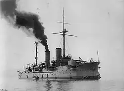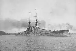 She was a gunnery training ship for most of World War I until being rearmed in 1917 in time to escort troop transports during Japan's intervention in the Russian Civil War.[35] Asahi was converted into a noncombat vessel during the 1920s and was then made a repair ship in 1937.[42] On the night of 25–26 May 1942, Asahi was torpedoed and sunk by the submarine USS Salmon off modern-day Vietnam.[41]