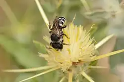 Hylaeus longimaculus, copulation - Hylaeus dinkleri (Friese, 1898)
