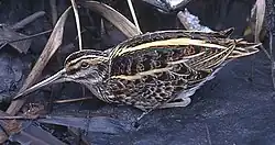 Nightjars are medium-sized nocturnal birds that usually nest on the ground. They have long wings, short legs and very short bills. Most have small feet, of little use for walking, and long pointed wings. Their soft plumage is camouflaged to resemble bark or leaves.