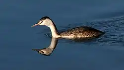 Grebes are small to medium-large freshwater diving birds. They have lobed toes and are excellent swimmers and divers. However, they have their feet placed far back on the body, making them quite ungainly on land.