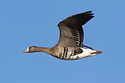 | Greater white-fronted goose | Anser albifrons | A | Least concern | ? | Rare winter visitor |