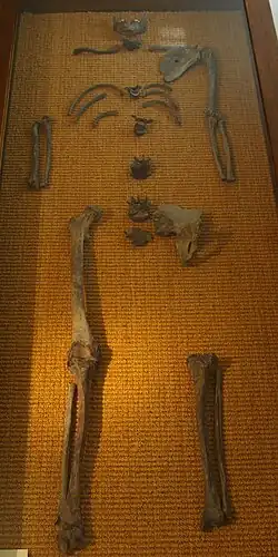 The skeletonized remains were discovered along with birch hazel sticks with wooden wheels.[31] | |