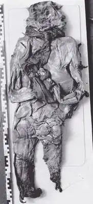 Hair, skin, nails, and his few clothes were also preserved.[53] He was found with a leather belt, shoes, and a pair of breeches.[54] |
